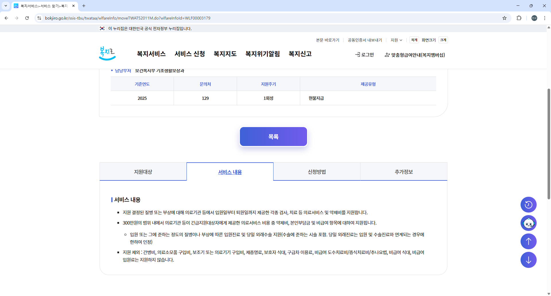 | 신청 방법 | 시·군·구청, 읍면동, 복지로 |